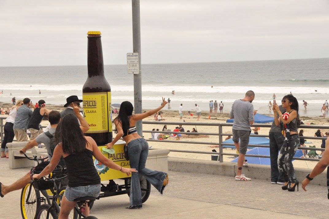 Customized and specially fabricated enlarged product model displayed on a custom built pedal powered pedicab. This innovative new advertising media grabs attention like no other outdoor medium.